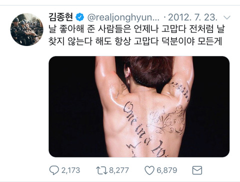종현아 나도 너에게 항상 고마웠어 덕분이야 모든게