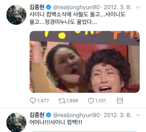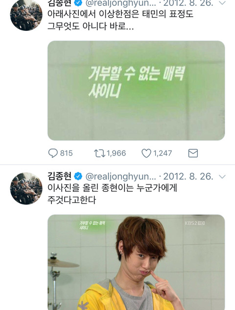 ㅋㅋㅋㅋㅋㅋㅋㅋㅋㅋ이 때 트윗으로 미농이 놀리기 참 많이했던 종현이 ㅋㅋㅋㅋㅋㅋㅋㅋㅋㅋ