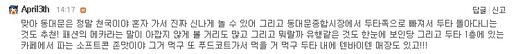 동대문은 혼자 돌아다니는 사람 많아서 혼자 먹는사람도 많다고 한다!