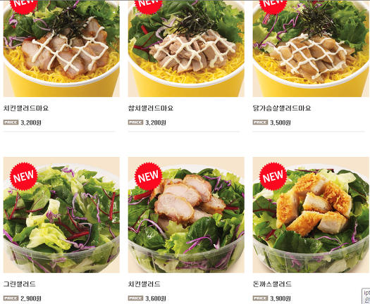 돈까스 샐러드는 판매부진으로 8월에 삭제되고 닭가슴살 샐러드가 나옵니당