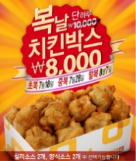 1. 말복(8월7일)에 치킨박스 10000원->8000원