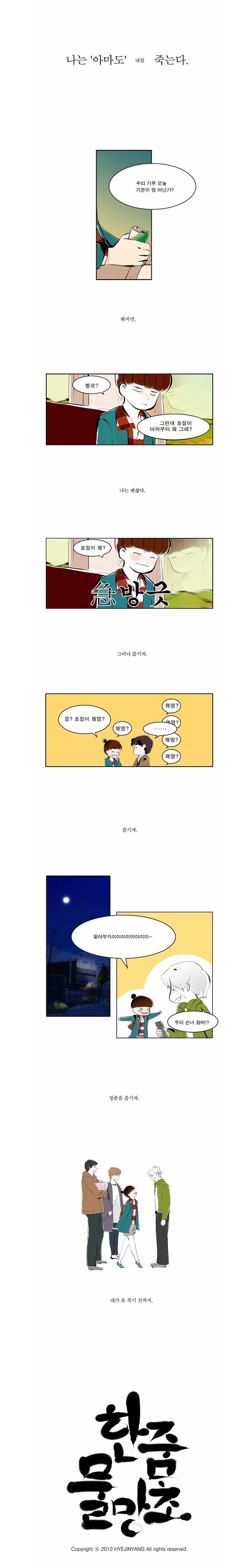 진짜 제목대로 죽음에 관해서도, 그냥 삶에 관해서도 많이 생각하게 되는 웹툰!