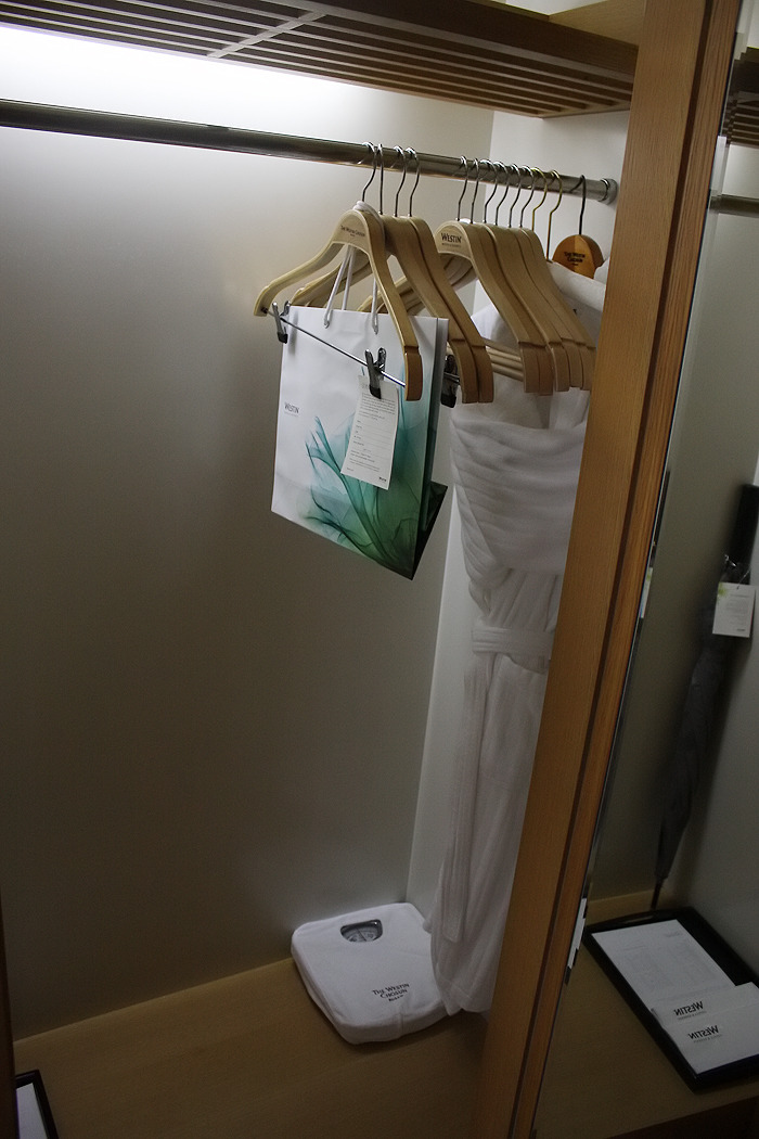 입구쪽 보면 가운과 체중계 슬리퍼등이 구비되어 있어!
