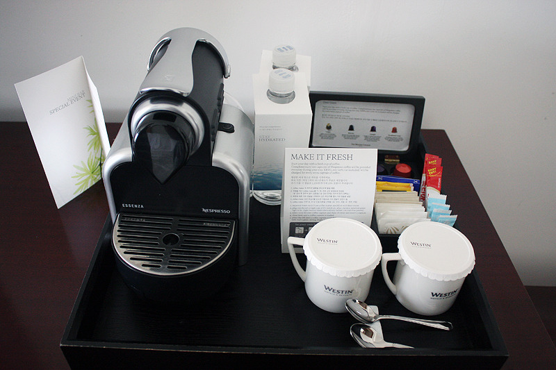 이건 준비되어 있던 네스프레소 머신기와 각종차와 생수!