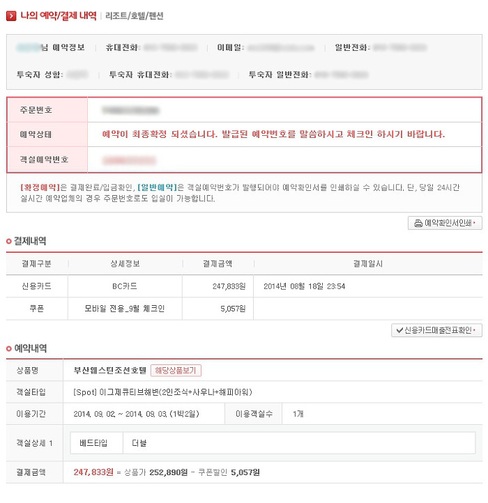 근데 인터파크 모바일로 예약하니까 할인쿠폰을 주더라고! 그래서 총 247,833원!!!!