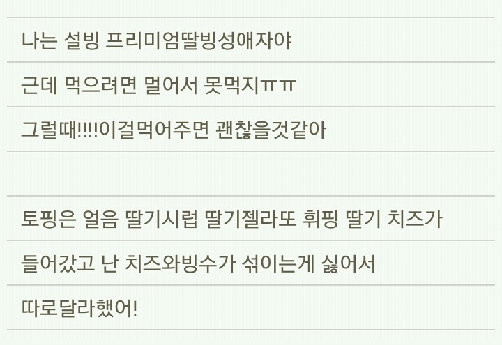 맛이 설빙하고 비슷해!! 근데 설빙은 연유가 있어서 연유맛이 좀강한데 여기는 딸기시럽맛이 좀 강해