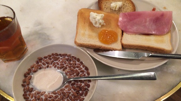 조식은 식빵 햄 시리얼 종류도 여러가지 있고 삶은 계란도 있구 차 종류도 음료도 많아 식당이 아늑한 분위기야