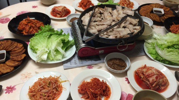 장점 : 아침 점심 저녁을 다 먹을 수 있어!! 삼겹살은 내가 여기 처음 온 날 저녁에 먹은거구!ㅋㅋ 파리에 와서 삼겹살을 먹다니 ㅋㅋㅋ