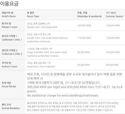 성수기는 그러려니하는데 비수기에도 다락방 11만원,화가의방12만원이면 다른 게하보다는 약간 높은가격이지? ㅠ