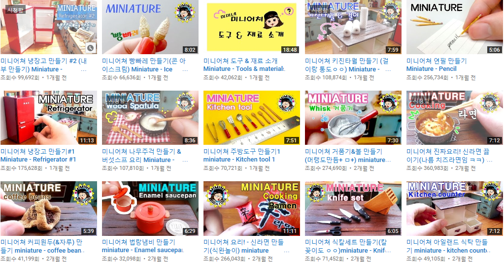 무튼 이렇게 다양한 미니어처 제작영상이 올라왔고, 올라오고 있어!