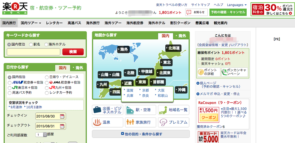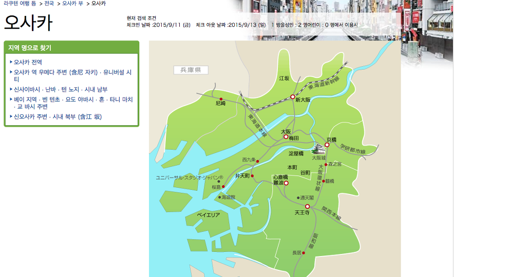 이게 라쿠텐 트래블 홈페이지에 보면 딱 보이는 페이지야.