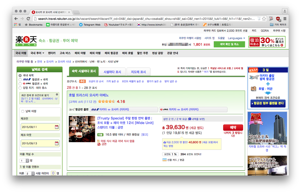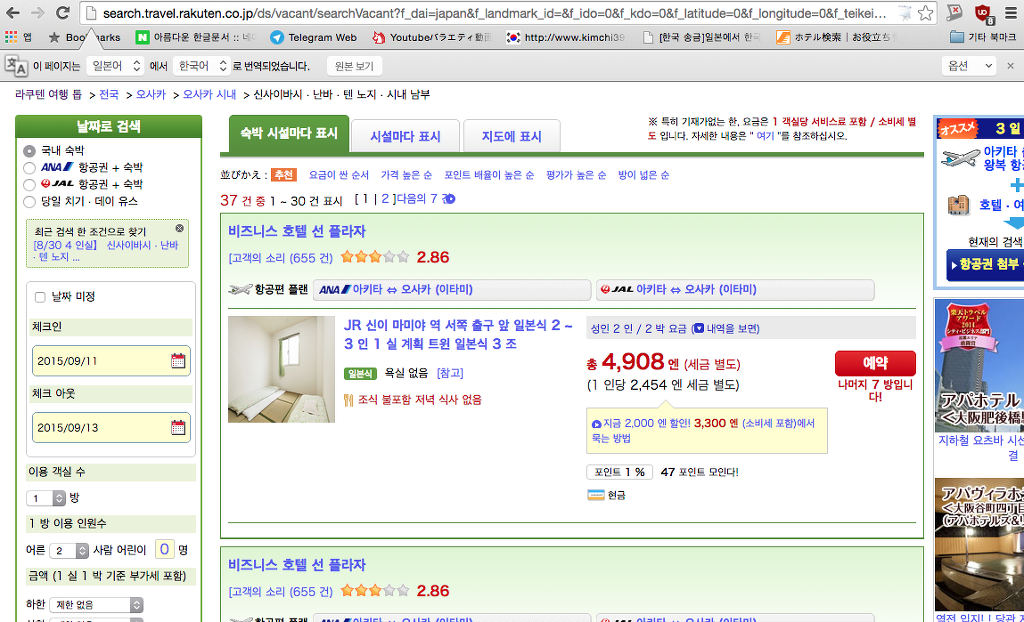 근데 이럴땐 아고다, 익스피디아 이런데는 안올리고 무조건 라쿠텐, 쟈란이였어.