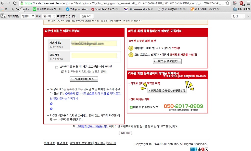 라쿠텐에 가입되어있는 여시들은 아이디랑 비번을 넣으면 되는데