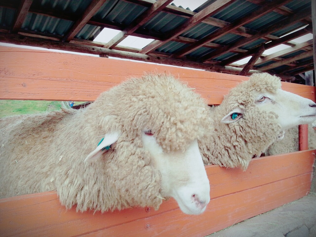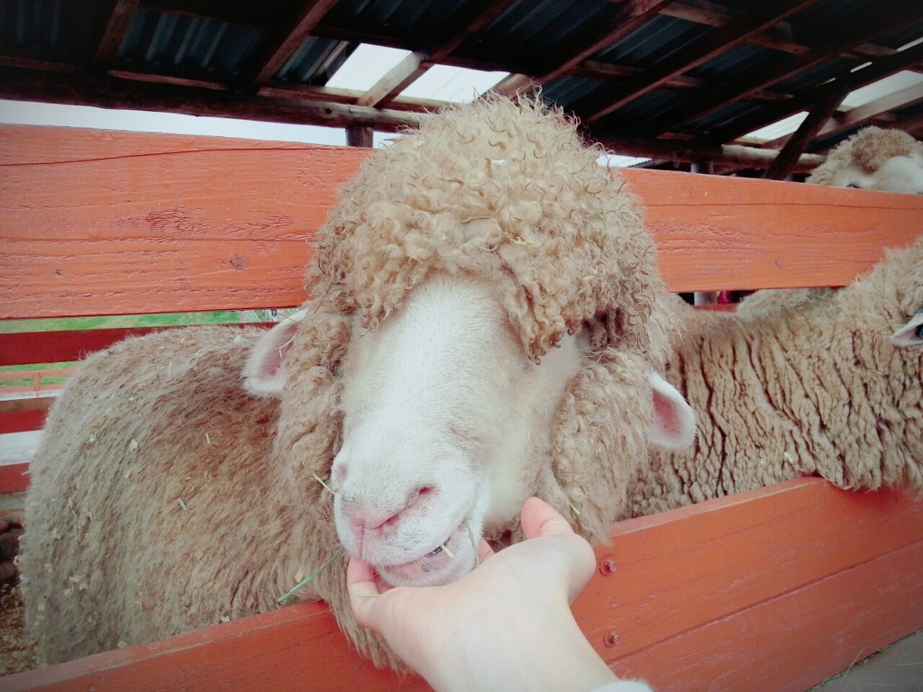 난생처음으로 양을 만져봤는데 양털은 뻣뻣하다고 해야하나.. 절대 빗으로 빗어도 안내려가는? 트리트먼트해주고 싶은느낌?