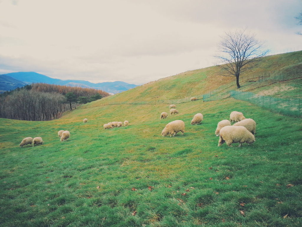 양떼목장은 산책코스로 되어있고 중간에 건초주기 체험장이 있어.