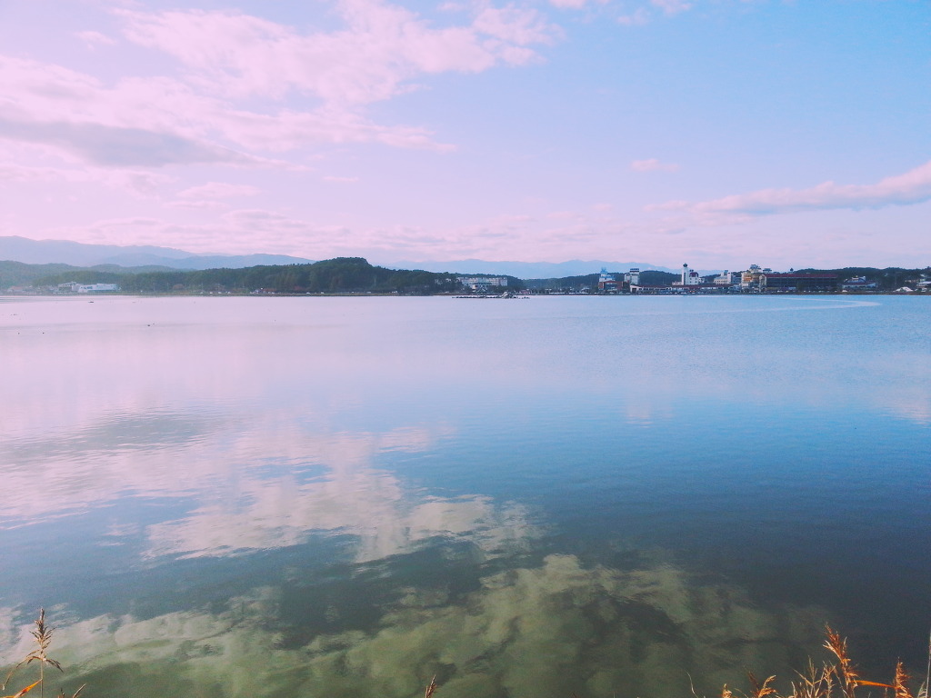 경포호를 보려면 해수욕장에서 좌측편에 횟집이나 편의점 건물들 사이에 골목으로 쭉 걸어나가면 돼