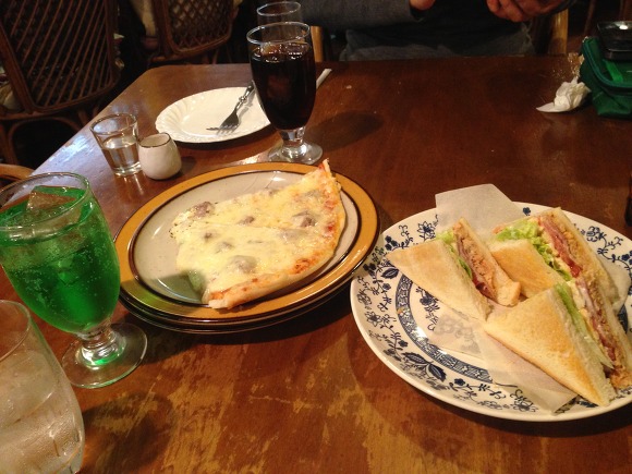 런치세트는 피자랑 샌드위치 중에 선택이고 1050엔 정도.