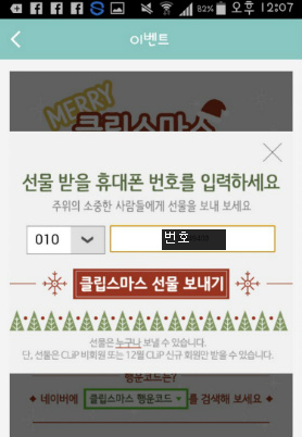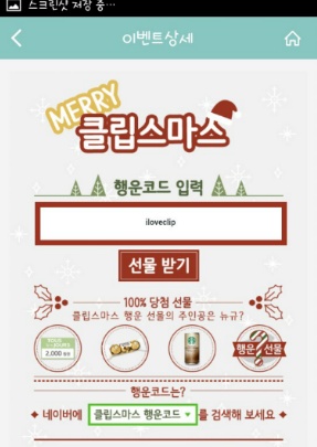[[쿠폰세일정보]]클립 크리스마스이벤트에오!!! 100%당첨 간식거리 하나씩 선물하세오!!!!!+코드추가!!