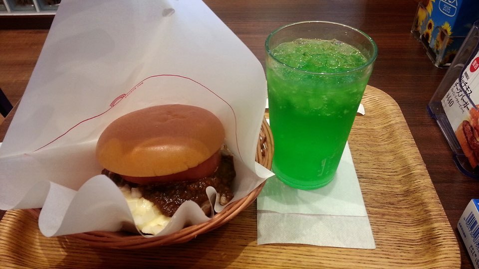 갔다. 모스버거. 먹었다. 세트 with 메론소다