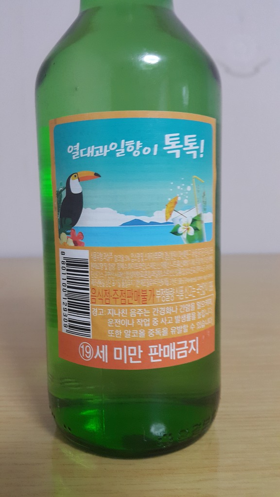 뒷 부분 사진! 알코올은 5도야 거의 맥주나 부라더소다 비슷한 도수? 그래서 술 맛이 많이는 안 나! 소주긴 소주다보니 미약하게 알콜 맛이 나긴 하는데 이정도는 뭐 맛으로 충분히 넘어갈 수 있는 정도?