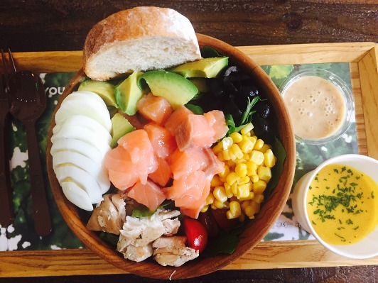 샐러드 말고도 투고샌드위치(치아바타로 만듬), 투고스프, 달걀밥? 같은것도 있엉