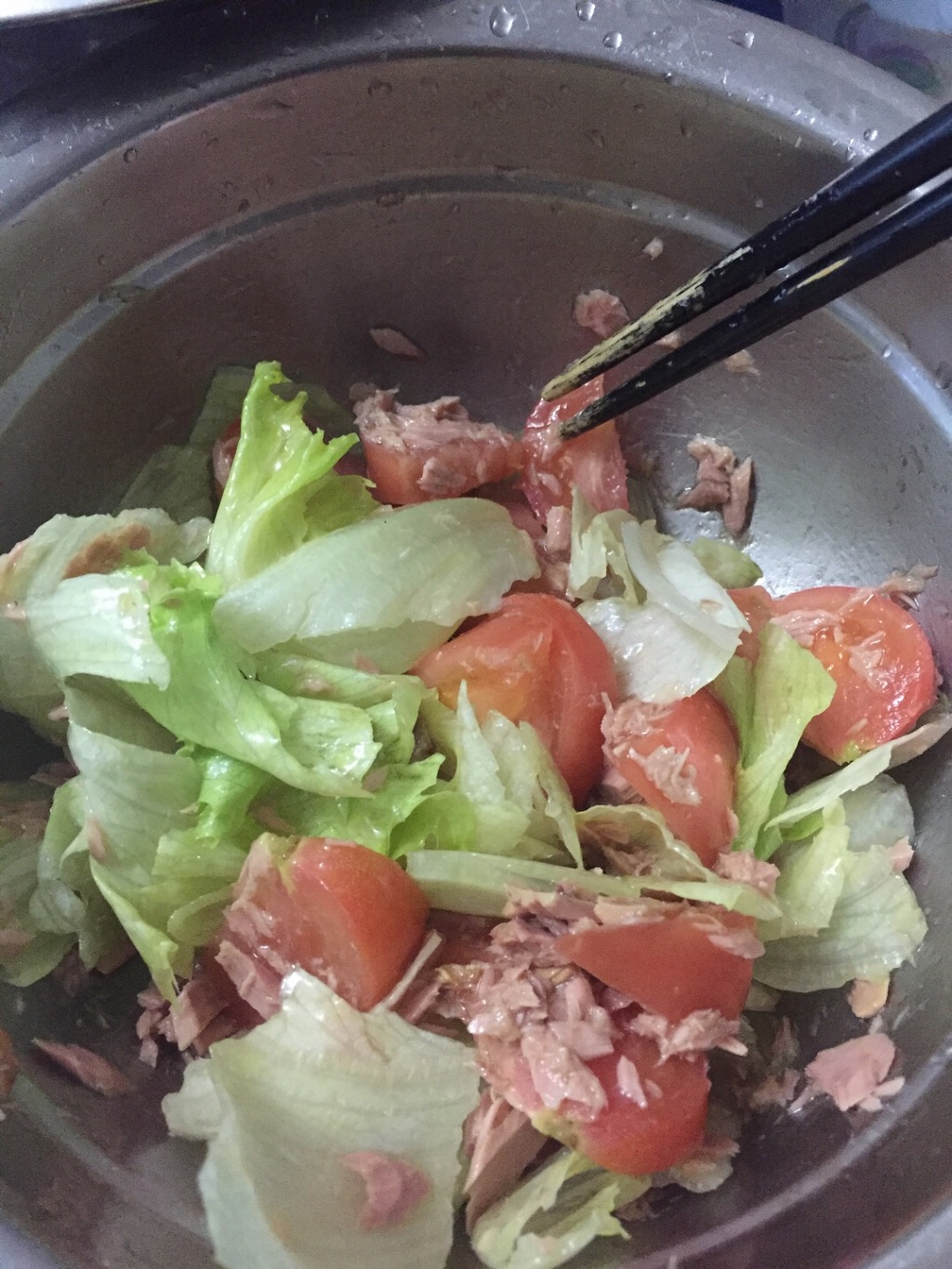 이딴거 만들고 (양배춘지 뭔지, 토마토, 참치, 식초+올리브오일)