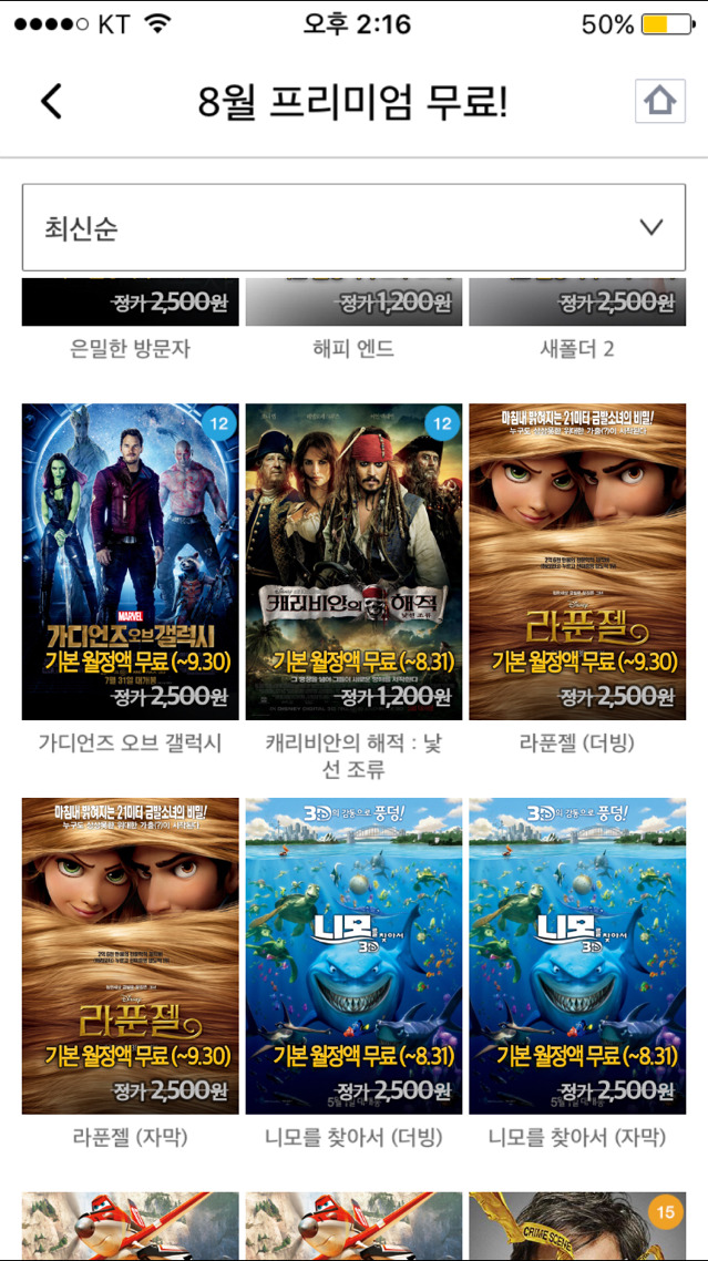 올레티비로 무료이던. 가디언즈 오브 갤럭시 라푼델도 있다!