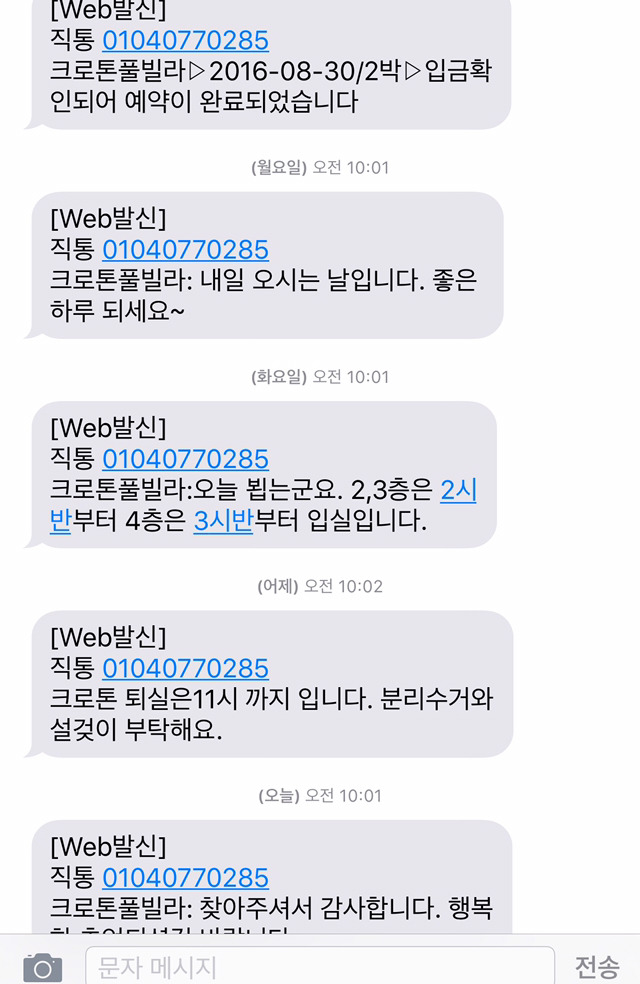 1박하고 담날 아침에 수건갈아준다고 오시고 샴푸도 또달라니까 친절하게 또필요한건없냐고 하시고 혹시 스파물도 갈아달라니까
