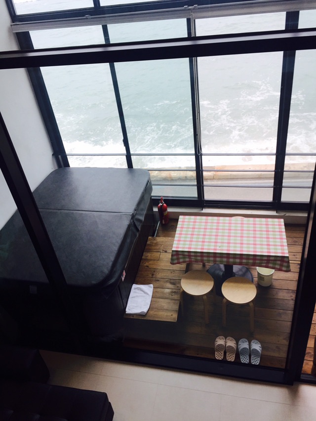 우리는 2박했는데 밖에 계속 비오고 바람불고,