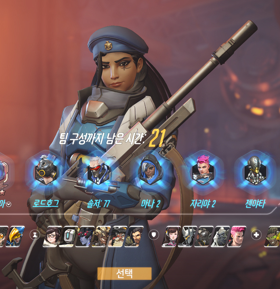 맨 처음에 픽창에서 영웅 고르면 얼굴 크게 클로즈업 되자나
