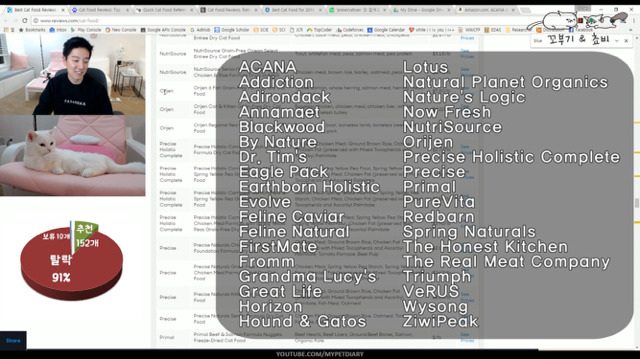 기준 통과한 브랜드들 목록입니다. 이 브랜드 사료 전부가 아니라 그중에도 괜찮사료는 목록으로 따로 있데요.