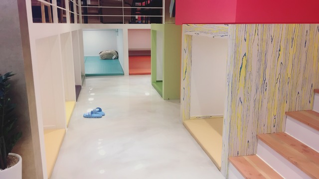 1층과 2층(복층)의 굴방! 2인이나 4인이 들어갈 수 있는 칸막이 방들이구