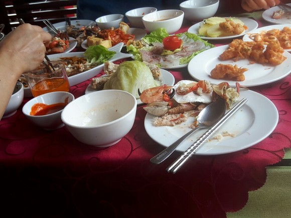 엄마랑 나는 우리팀 중년부부랑 같이 앉아서 먹었는데