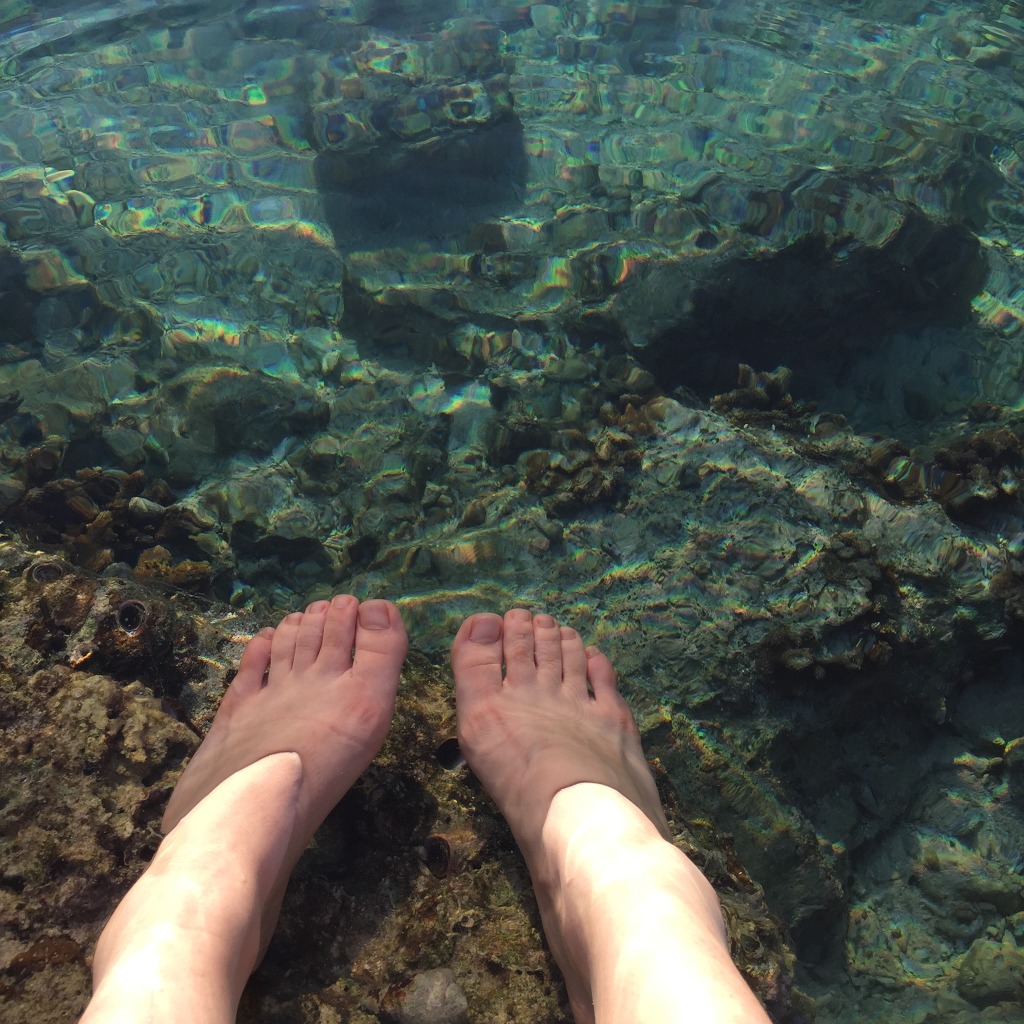 나 이러고 발 담그고 놀고 있는데 내 발꼬락 밑에서 뭐가 꼼지락 거리더니