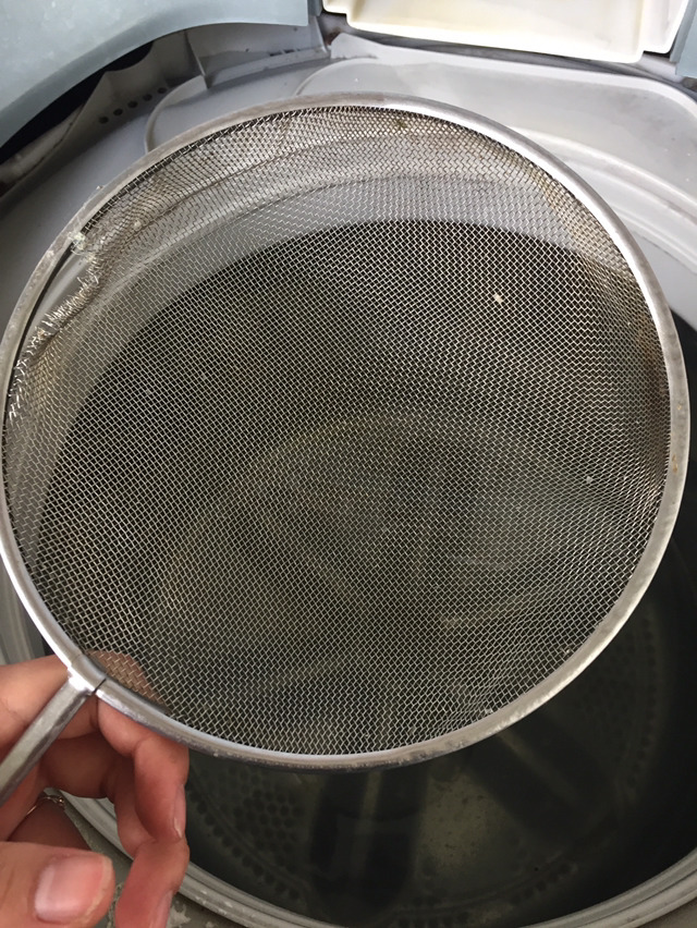 5. 그럼 각종 부유물과 탁한 물색을 볼 수 있는데 여기서 집에 안쓰는 채반있지? 그걸로 건져줘.. 없음 사주라.. 아니면 집에있는 헌거쓰고 하나 사줘..