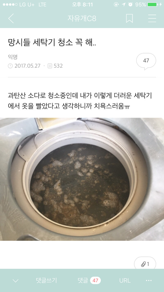 ..ㅎ 여시들..참고로 우리집 세탁기 청소 한번도 안한거 아니다..? 저게 3개월전에 청소했는데도 나온 때임
