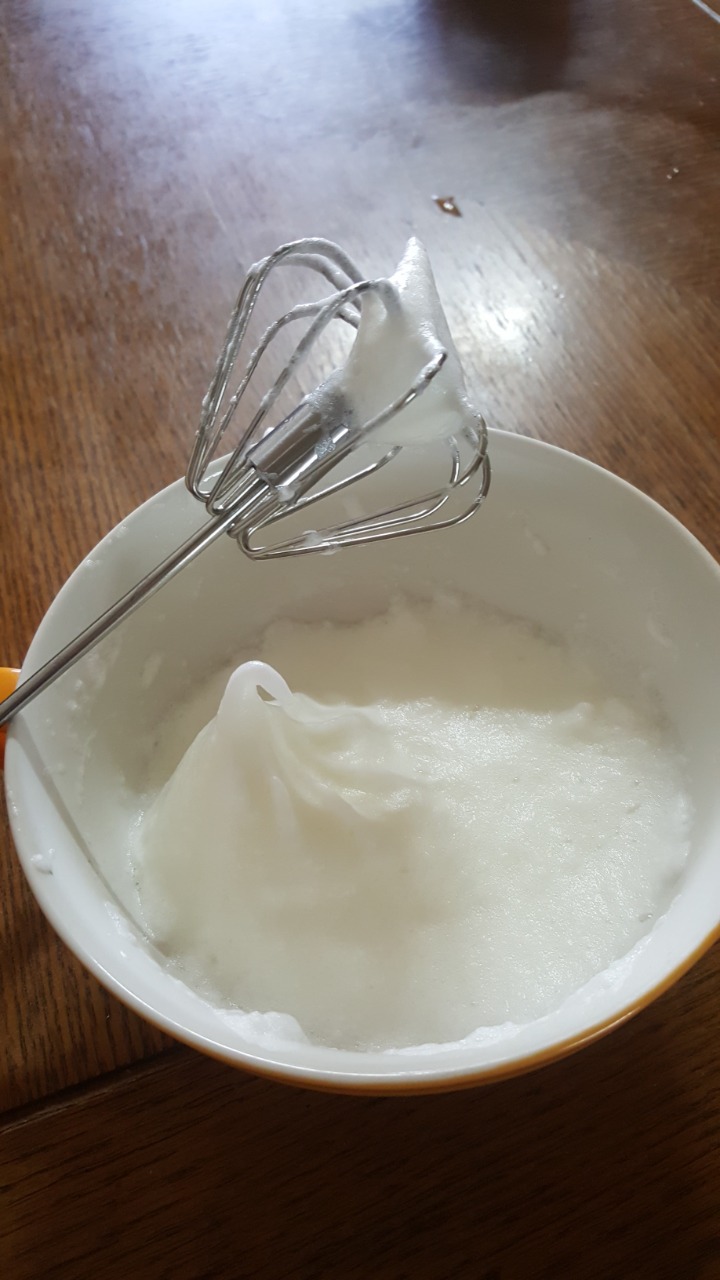 3.흰자를 머랭쳐줍니다. 설탕없이 하기 때문에 너무 주르륵 흐르지만 않을 정도면 충분!