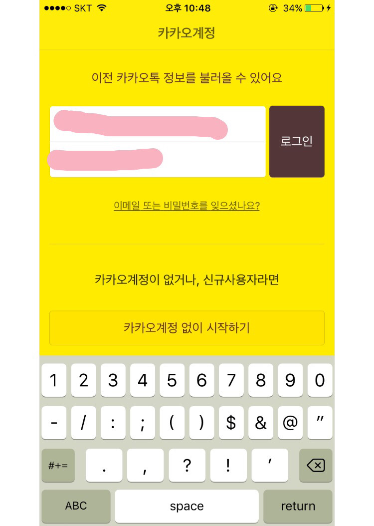 내가 쓰던 카카오톡 계정을 입력해봄