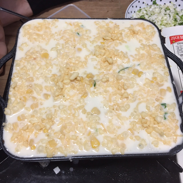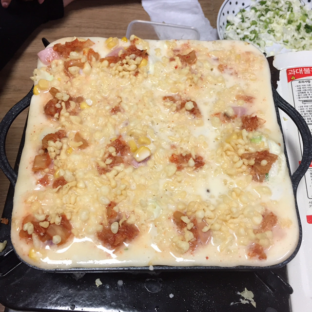 다시 3판째 남은 재료 왕창.. 소세지 문어 같이 들은 것도 있고 김치도 넣어줌. 문어+소세지+콘+김치