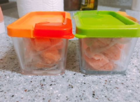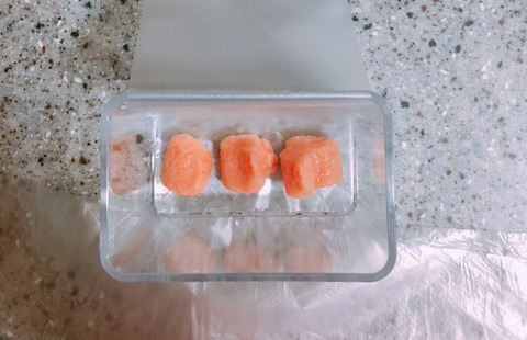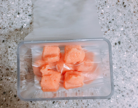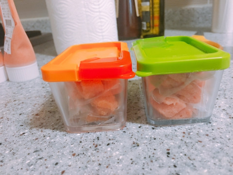 그래서 반은 냉장에 반은 냉동에 보관할려고 다이소에 소스통 사러갔다가 갑자기 예전에 바나나 얼렸던 방법이 생각나서 도전!!