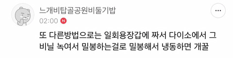 나는 혹시나 뚜껑 틈으로 냉동실 냄새밸까봐 지퍼백에 담아서 냉동 보관했어