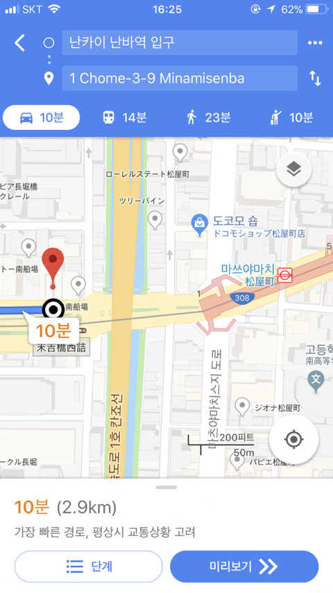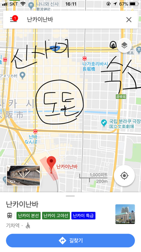 도톤보리 거리도 적어놓고 울 숙소도 적음