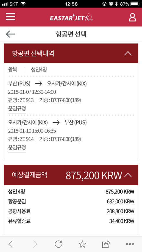 김해공항에서 이스트항공 타고 감