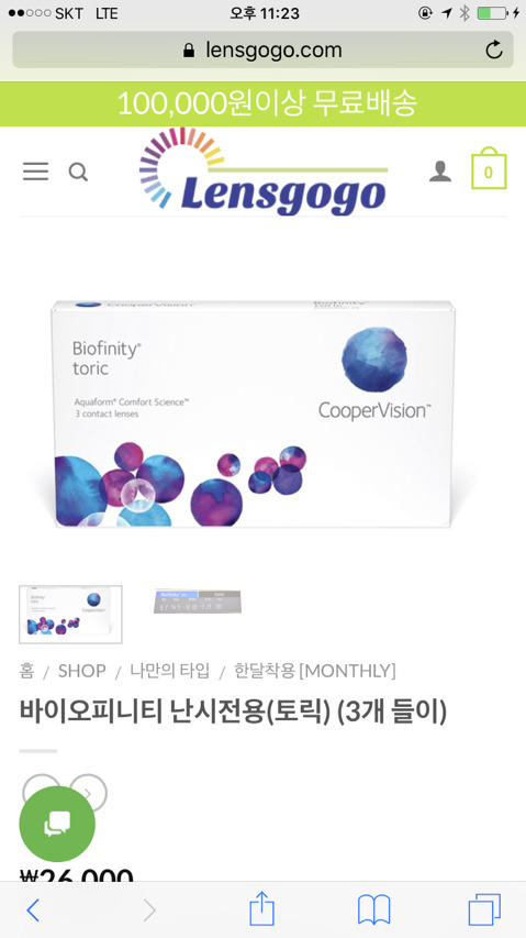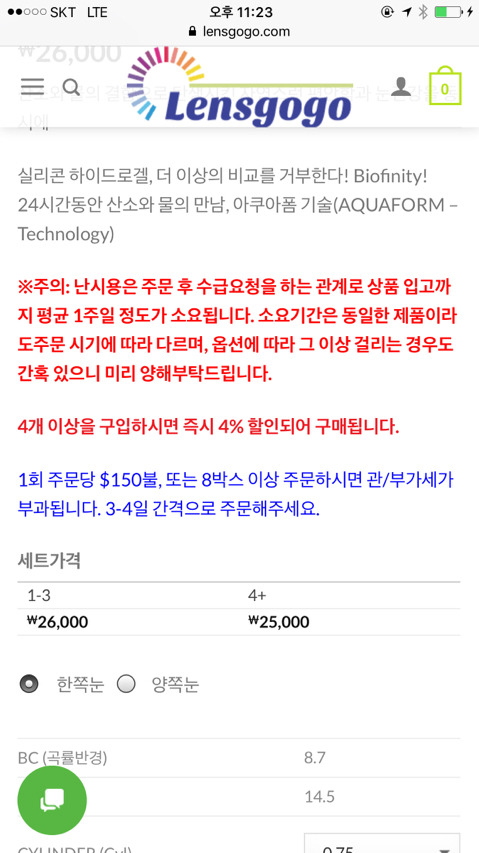 한쪽은 난시라서(3개짜리) 4개 사서 25000*4 = 100000원