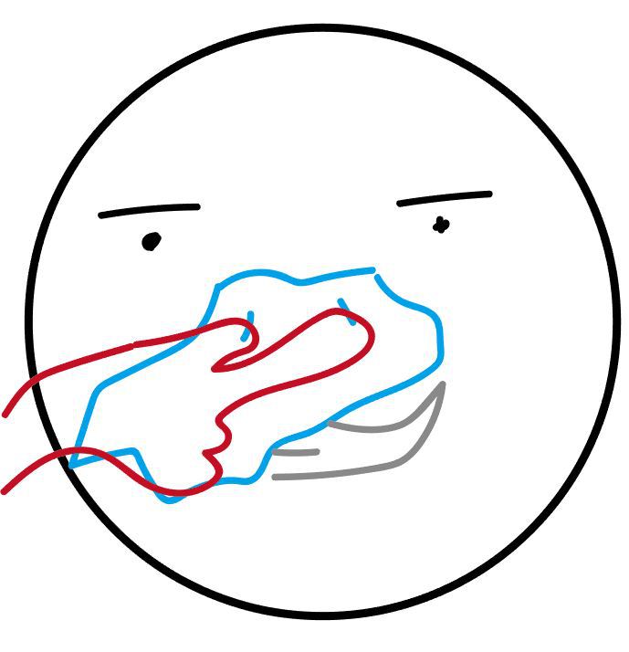 2. 입을 꾹 다물고, 양손 검지로 콧구멍을 꽉 막는다.