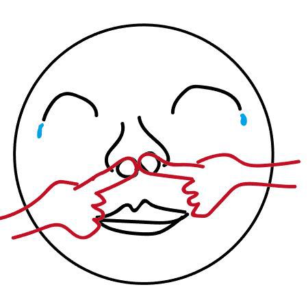이렇게 휴지로 콧물 닦는 척 코 막고 웃어,,