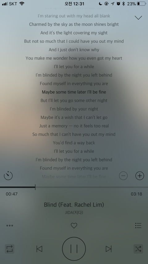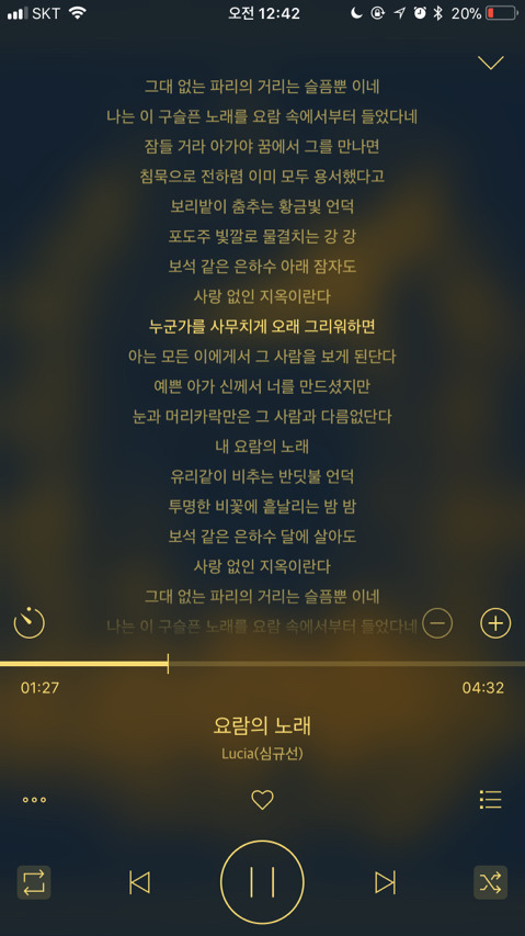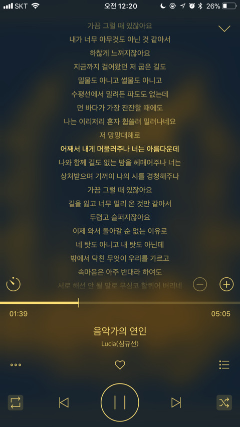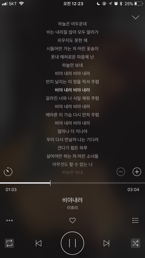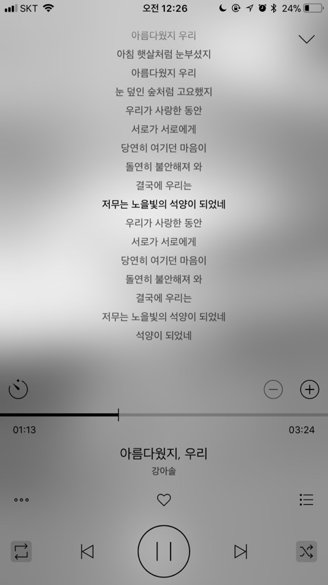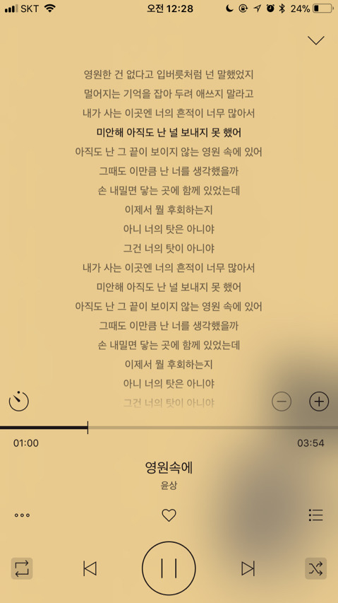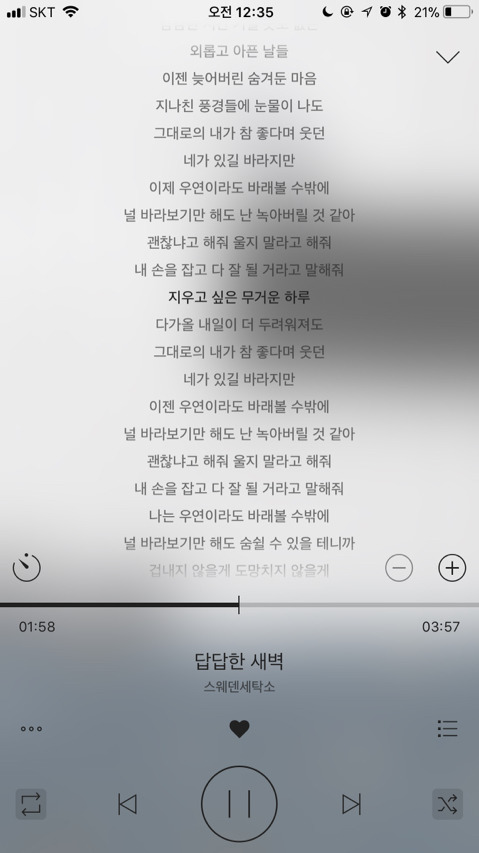 가사 들으면서 노래 듣는거 좋아해서 가사까지 캡쳐해왔어ㅎㅎ