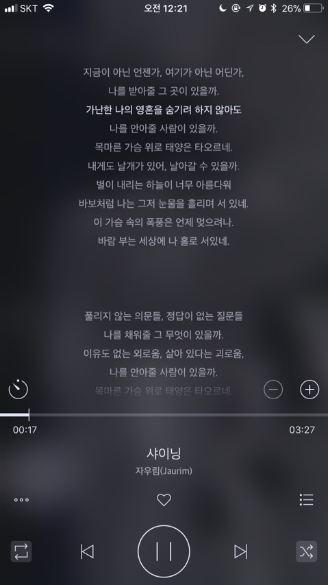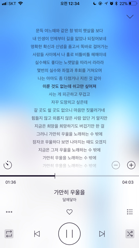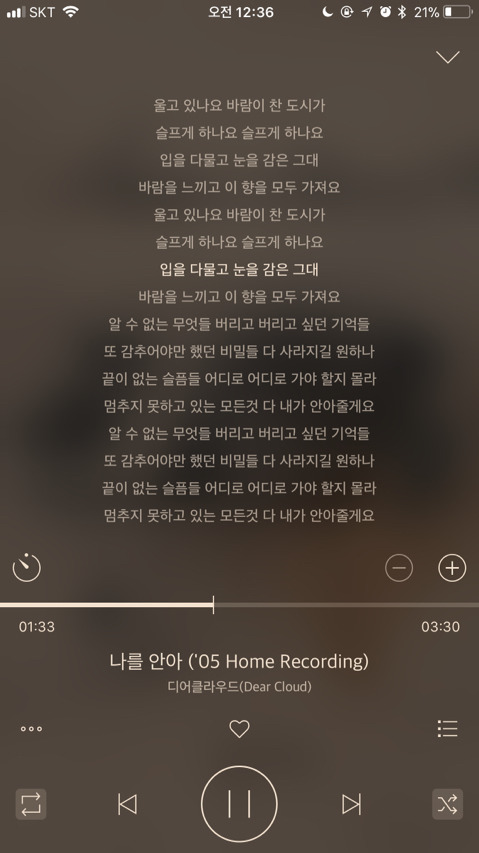 이건 요즘 내 마음이랑 너무 딱 맞는 가사라 자주 듣는 노래