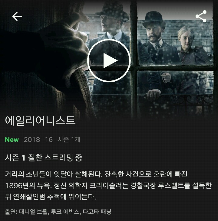 이제 막 스트리밍 시작한 새 시리즈 《에일리어니스트》.