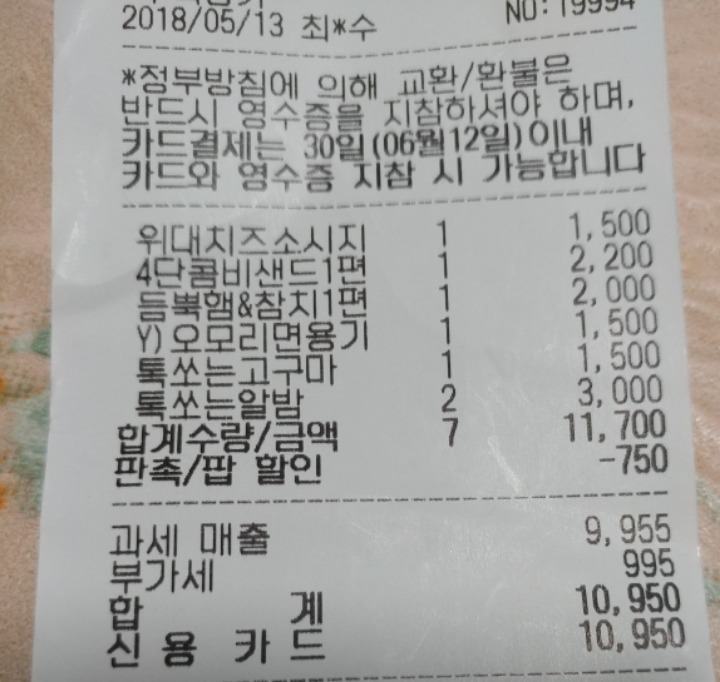 떡볶이는 현금내고 헐레벌떡 오느라 못받았어